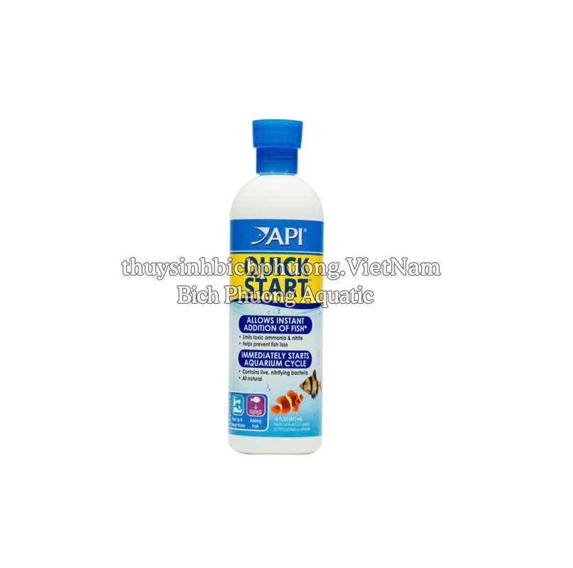 API QUICK START cho phép bạn có thể thả cá ngay lập tức vì nó có chứa vi khuẩn có lợi ngay lập tức bắt đầu chu kỳ hồ cá tự nhiên, chuyển đổi amoniac độc hại thành nitrit, sau đó thành nitrat vô hại để giúp ngăn ngừa cá chết trong bể của bạn.