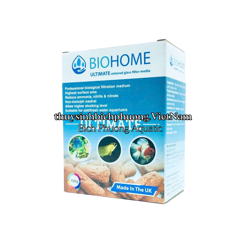 BIOHOME ULTIMATE là vật liệu lọc sinh học cao cấp được sản xuất bởi Aqua-Bio UK Ltd, một công ty có trụ sở tại Vương quốc Anh. Sản phẩm này được thiết kế để tối ưu hóa quá trình xử lý amoniac, nitrit và nitrat trong nước, giúp duy trì môi trường sống lành mạnh cho cá và thủy sinh.