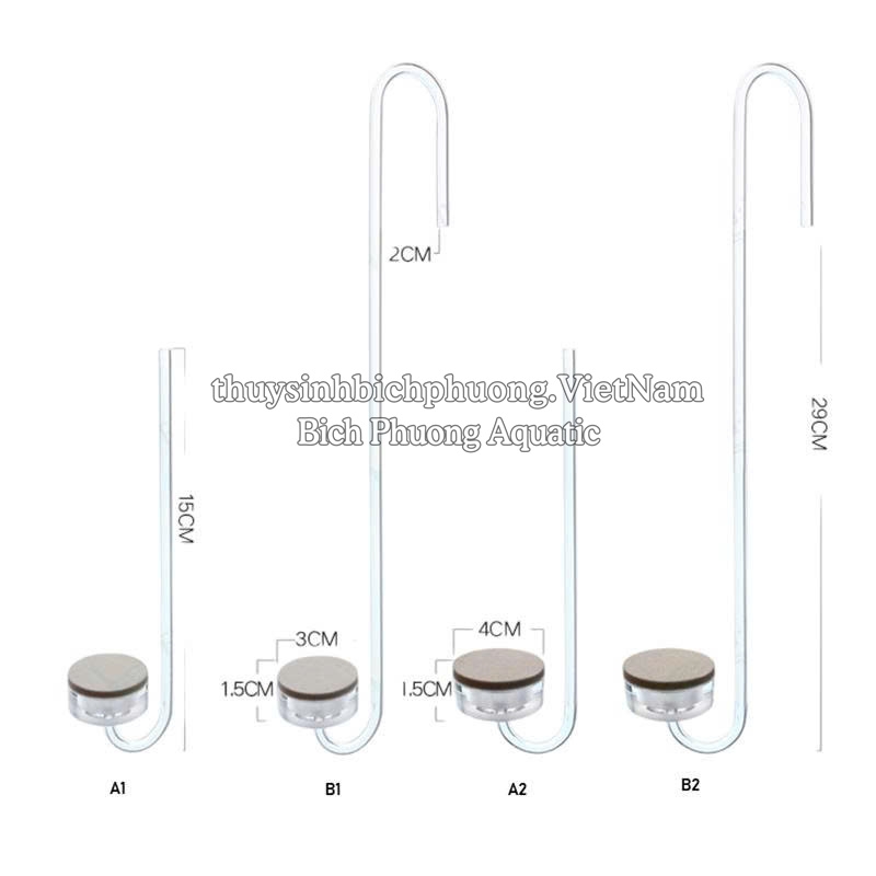 - Chất liệu: Ống Acrylic trong suốt, đĩa sủi ceramic mịn.