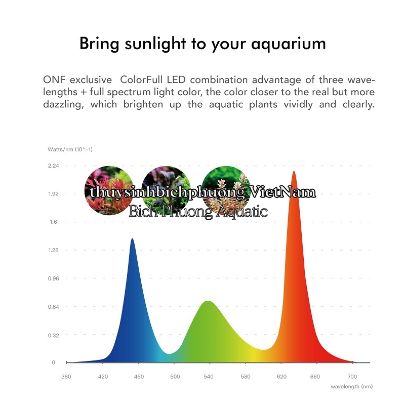 ĐÈN FLAT NANO + được sử dụng mắt LED coloful tùy chỉnh độc quyền của ONF cho tất cả các loại cây trồng, được kết hợp giữa lợi thế của 3 bước sóng và màu ánh sáng phổ đầy đủ khiến màu sắc gần với thực tế hơn nhưng rực rỡ hơn giúp làm sáng các cây thủy sinh một cách sống động và rõ ràng.