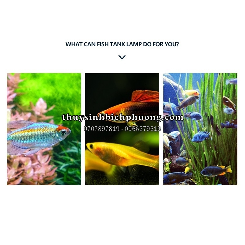 - Đèn phù hợp cho các bể cá nhỏ dưới 90cm và hồ cá thủy sinh trồng các loại cây đơn giản như rong, rêu, ráy, dương xỉ,… không dùng được cho các bể thủy sinh chuyên nghiệp và cây thủy sinh khó trồng.