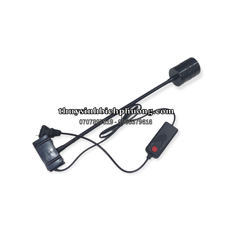- Kẹp cố định vào thành hồ, uốn cong phần thân và xoay đầu đèn để điều chỉnh hướng rọi theo nhu cầu. Tiến hành mở điện để sử dụng.