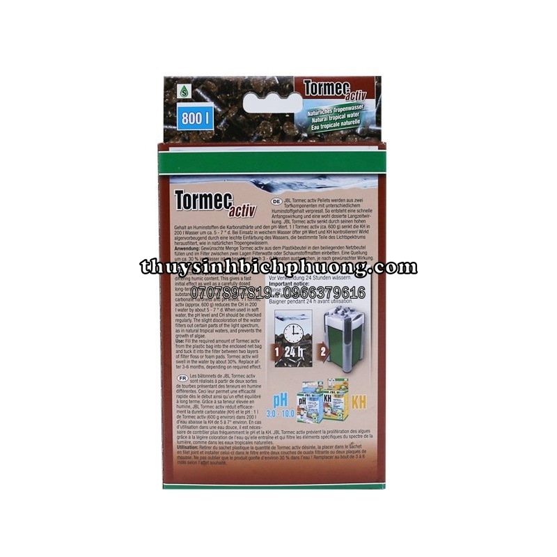 - JBL Tormec Activ có tác dụng kéo pH trong vòng 9 ~ 12 tháng tùy vào tình trạng thực tế mỗi hồ.