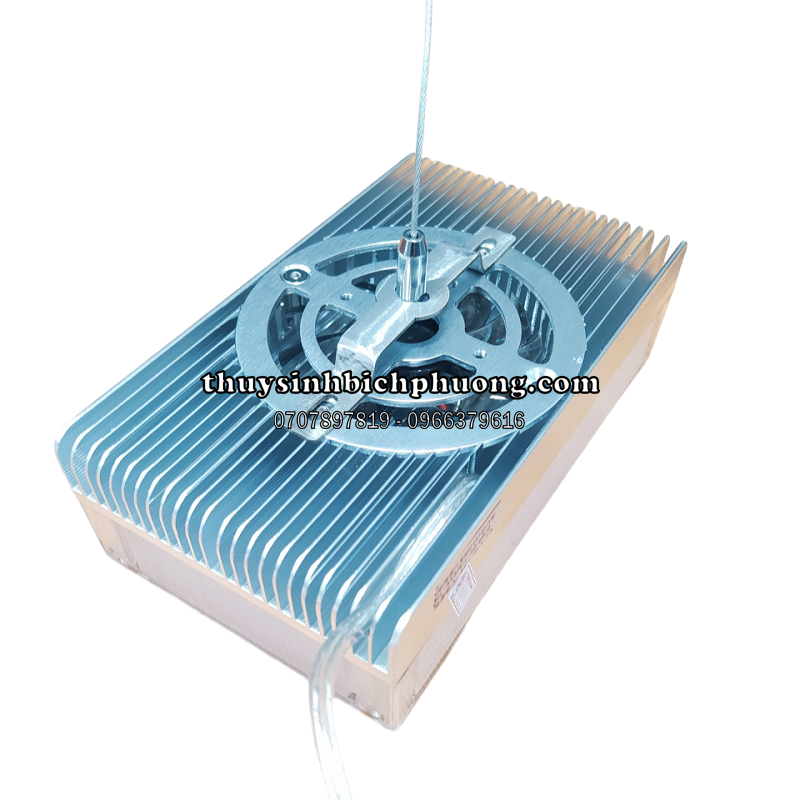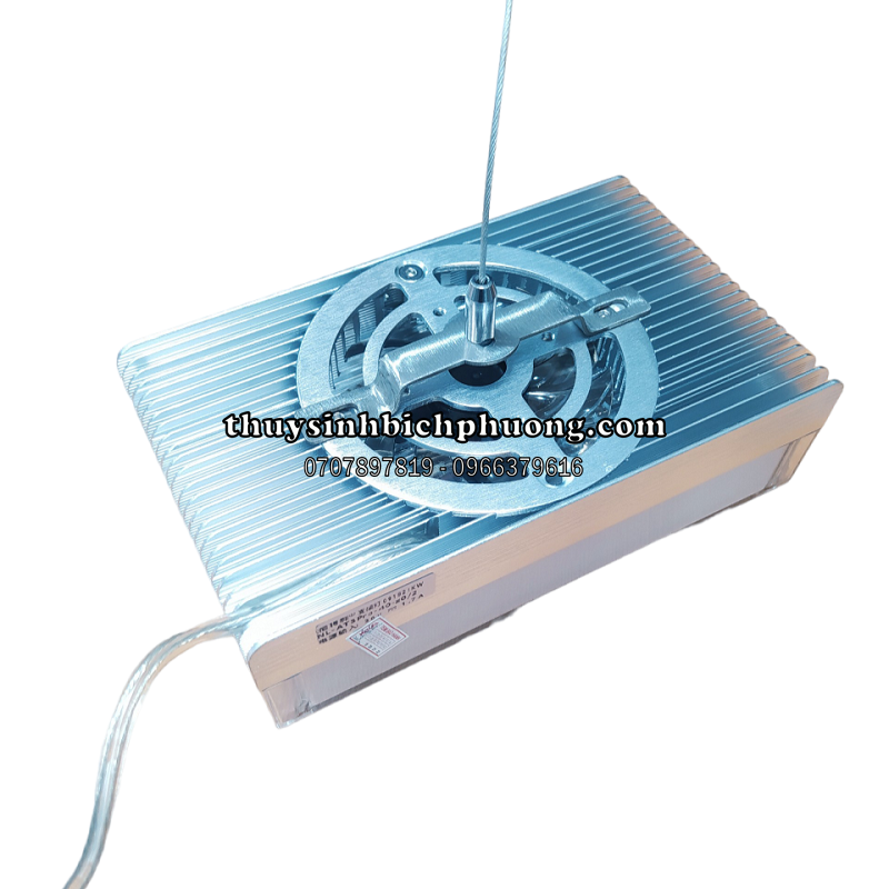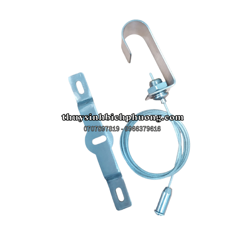 - Treo móc treo của bộ kit lên chân treo đèn. Canh chỉnh chiều cao của đèn so với mặt bể kính. Chiều cao tối thiểu 20cm. Phần dư của cáp có thể cắt bỏ hoặc quấn tròn lại cho thẩm mỹ.