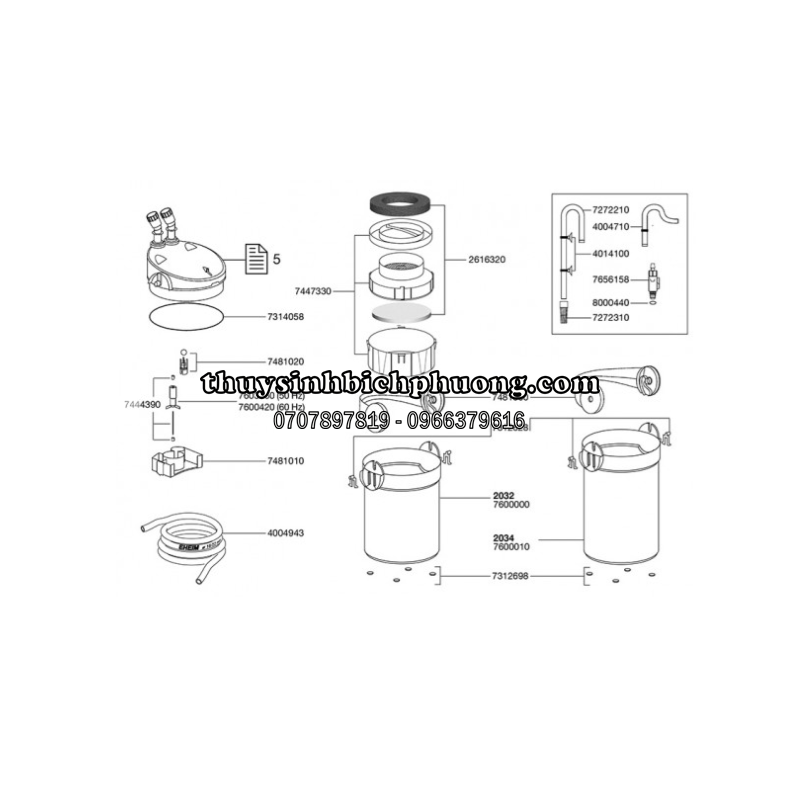 - Phụ kiện đi kèm: 2 vòi đóng ngắt, cút xả, ống vào, vòi chất lượng EHEIM, phụ kiện lắp đặt.