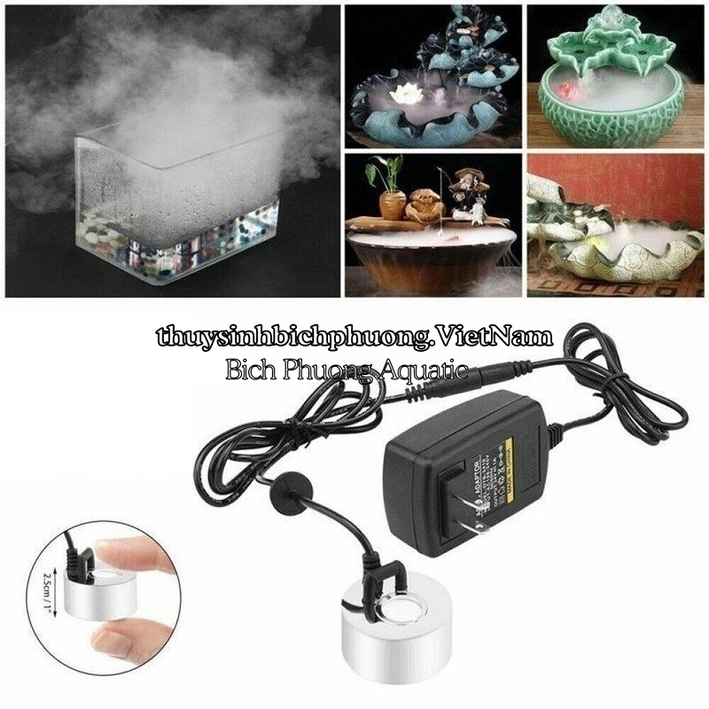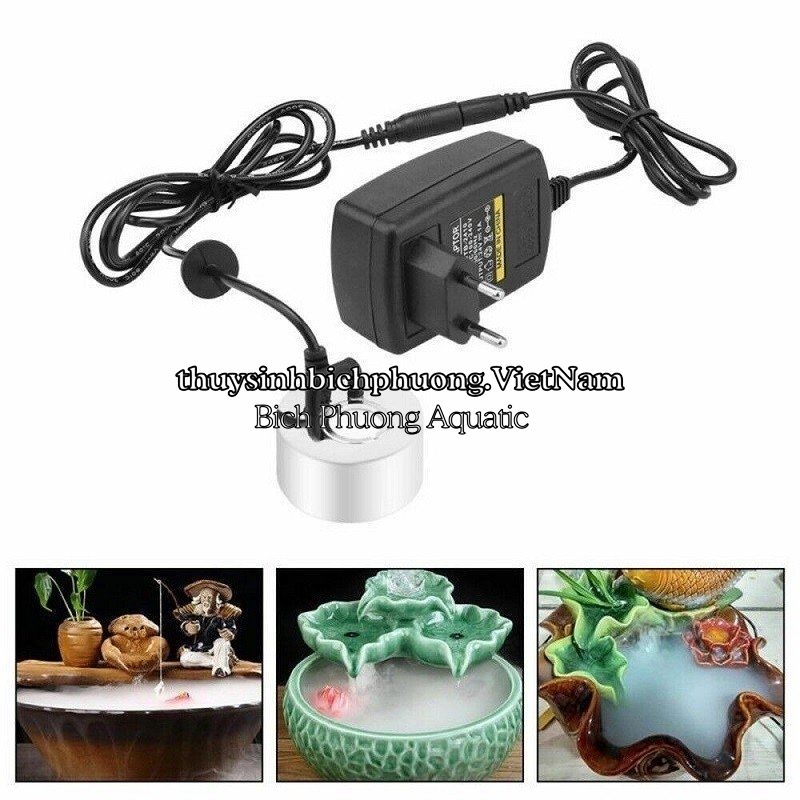ULTRASONIC MIST MAKER HUMIDIFIER NO LED – MÁY TẠO KHÓI PHUN SƯƠNG SIÊU ÂM KHÔNG ĐÈN được dùng tạo khói cho hồ thủy sinh, tiểu cảnh, thác nước mini, bể bán cạn, hòn non bộ, đài phun nước mini, teranium, paludarium,… giúp tạo ẩm cho môi trường nuôi trồng cây thủy sinh bán cạn, làm đẹp cho bối cảnh.