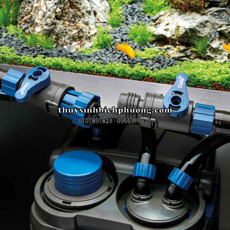 Van khóa đôi OASE có 3 fi gắn ống thông dụng là fi 9, fi-12 và fi-16 phù hợp với kích thước dây lọc thùng, lọc phụ trên thị trường hiện nay. Được thiết kế với khả năng kiểm soát lưu lượng kép và tính năng ngắt kết nối đảm bảo không bị tràn nước khi vệ sinh lọc.