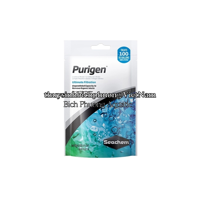 Seachem Purigen giúp kiểm soát nồng độ Ammonia , Nitrite và Nitrate bằng cách hấp thu các chất thải hữu cơ có chứa Ni tơ. Seachem Purigen dùng được cho cá hồ nước ngọt và nước mặn.