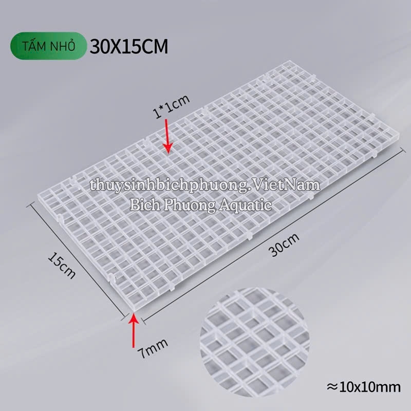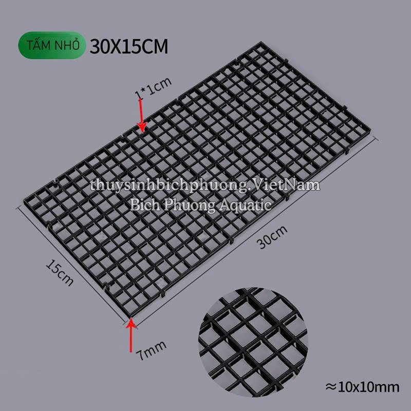 - Kích thước mắt lưới rộng 1x1cm nên có một số loại cá bé như cá Neon, cá trâm hay các dòng cá bé xíu sẽ chui lọt qua. Nếu hồ bạn đang nuôi các loại cá nhỏ như vậy thì sẽ k phù hợp. Sản phẩm chỉ phù hợp nếu bạn mua tấm lưới nhựa làm nắp đậy hồ cá.