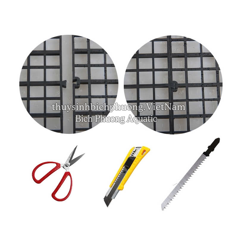 - Kích thước tấm lưới có thể tùy chỉnh hay cắt bỏ những khoảng trống bằng các dụng cụ như kéo, dao rọc giấy, lưỡi cưa nhỏ.