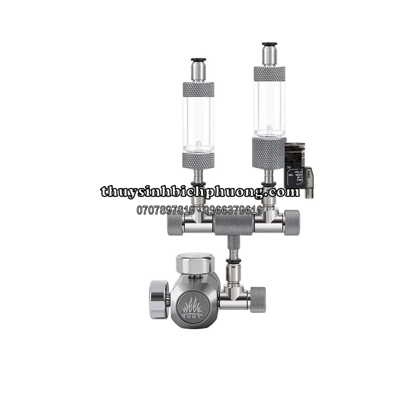 - Lắp ráp bộ chia CO2 thành dạng cây thẳng đứng, khóa đầu ra trước khi lắp vào van tinh chỉnh.